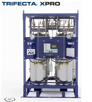 The Trifecta® system features twin liquid cylinders and automatic pressure switching. It operates by drawing liquid from a standard bulk tank into one of its cylinders and then boosts the liquid pressure with a high performance pressure builder.